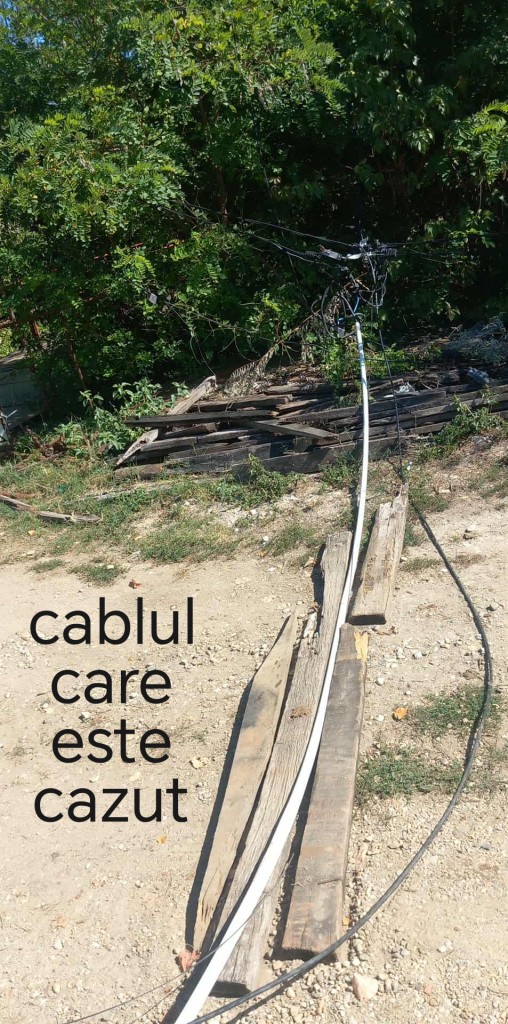 Și ca treaba să miroase a Dorel până la capăt, acum există un cablu care atârnă de-a dreptul pe pământ și despre care cetățenii nu au mai putut anunța, pentru că, surpriză, nu le mai răspunde nimeni din partea Electrica la telefon. Pentru a nu calca totuși accidental pe firul căzut,tot oamenii au fost cei care au pus niste blăni, și au delimitat oarecum pericolul cu care trebuie sa traiasca din cauza nepăsării.