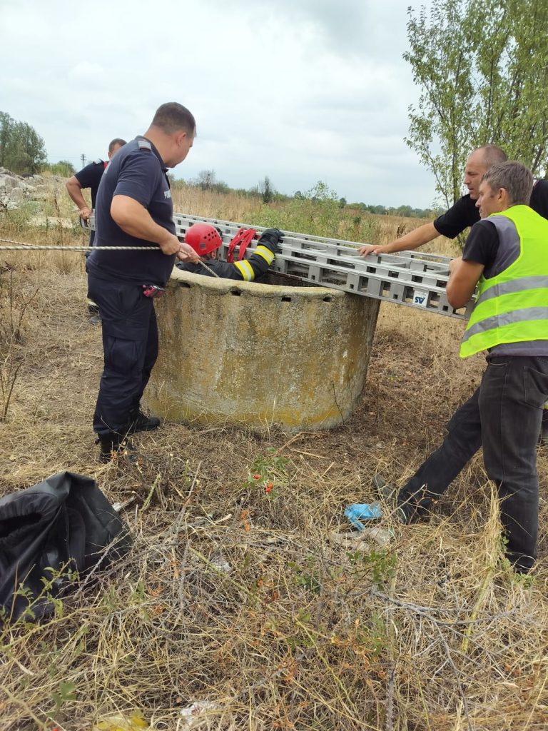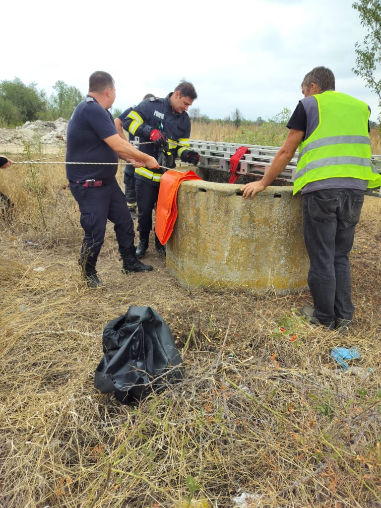 Pompierii au sosit cu scară suficient de lungă iar în scurt timp, după o misiune de salvare mai puțin obișnuită, unul dintre suflete a fost scos din nou la lumină. Din păcate,unul dintre căței murise deja pe fundul puțului, deshidratat și nemâncat de cine știe câte zile.