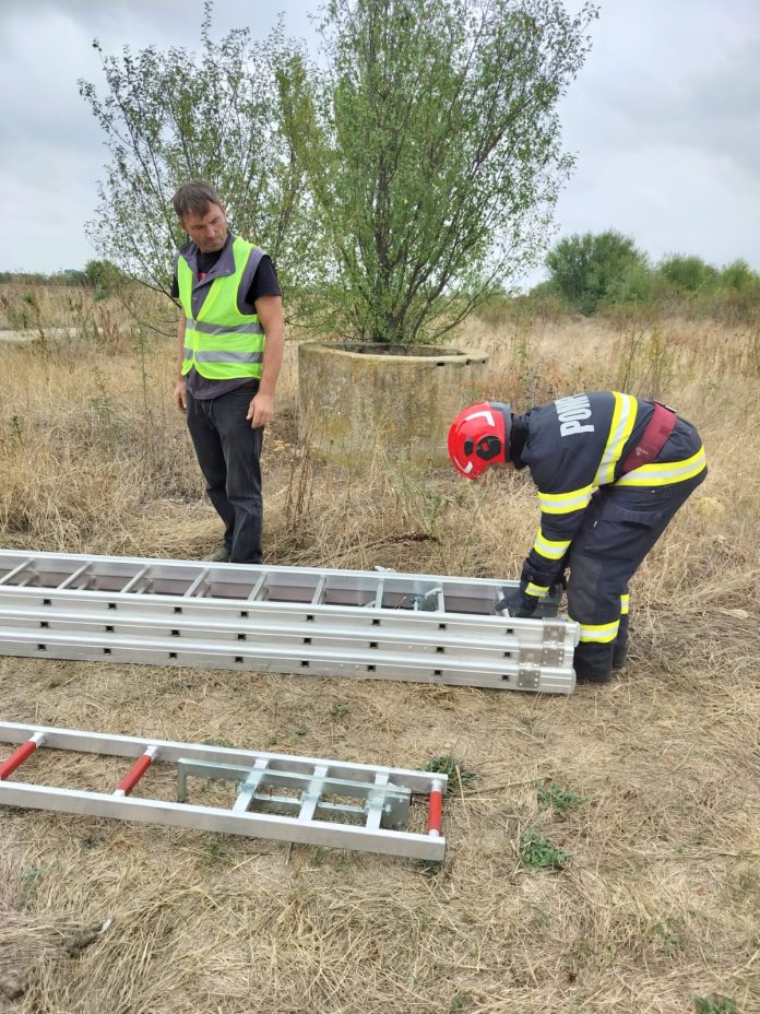 Pompierii au sosit cu scară suficient de lungă iar în scurt timp, după o misiune de salvare mai puțin obișnuită, unul dintre suflete a fost scos din nou la lumină. Din păcate,unul dintre căței murise deja pe fundul puțului, deshidratat și nemâncat de cine știe câte zile.