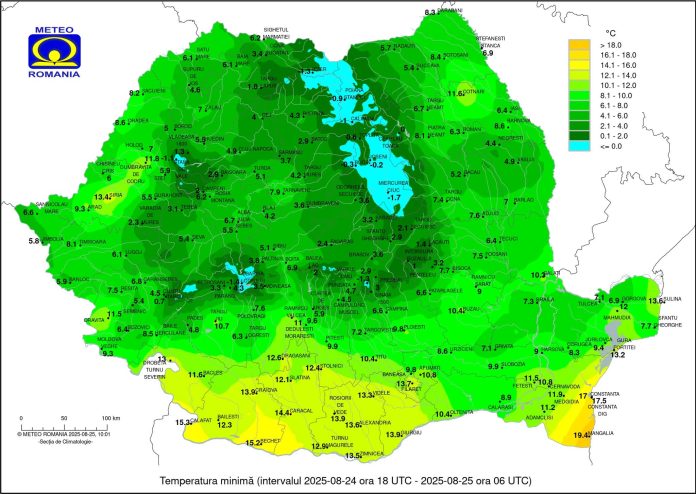 Iată câteva temperaturi minime înregistrate la stațiile meteo din țară în această dimineață: