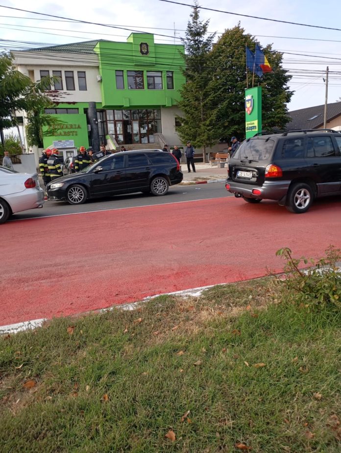 Ieri dimineață, puțin după ora 9, pompierii au primit un apel pentru a interveni în cazul unui accident produs în fața primăriei Găești.