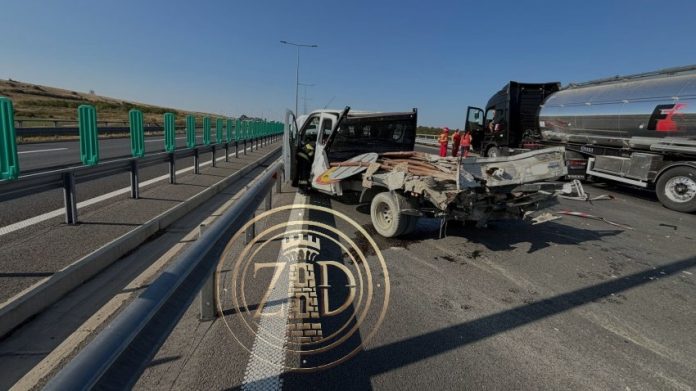 Un tânăr din Hulubești și-a găsit sfârșitul pe autostrda A1 după ce un autotren a spulberat trei muncitori care trasau marcajele rutiere